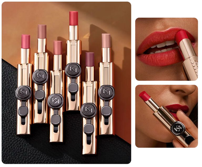 أحمر شفاه مبتكر بآلية فتح منزلقة تُستخدم بيد واحدة، يمنحك شفاهاً مخمليّة وجذّابة في تمريرة واحدة فقط.